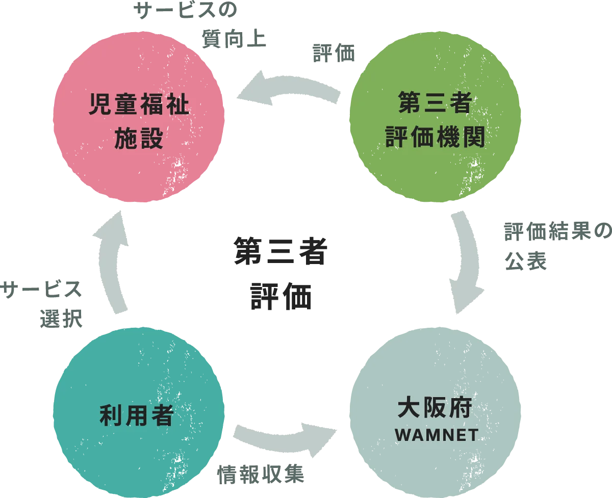 私たちは、児童福祉施設(こども園、保育園、児童館、児童クラブ等)の子どもに携わる方々の評価を主に実施していきます。子どもは無限の可能性をもつ存在です。それ故に、子育てや教育など子どもとの関わりに絶対的なゴールというのはありません。現状を把握し改善を重ねることによって、それぞれが掲げる理念の実現に繋がり、より良い関わりを提供できると考えます。