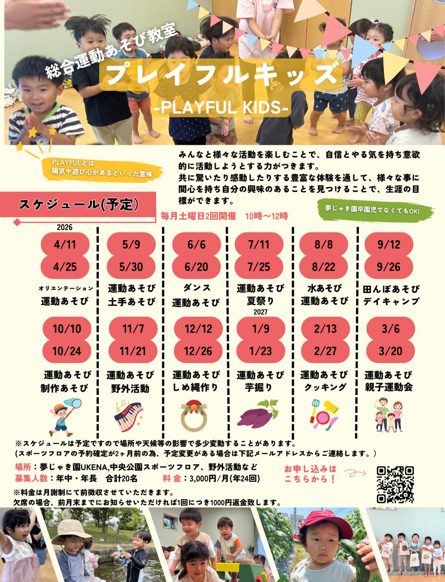 夢じゃき園UKENA、中央公園スポーツフロア、野外活動など - 募集人数